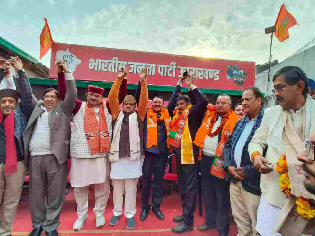 देहरादून। पूर्व विधायक और सैकड़ों जनप्रतिनिधियों के साथ विभिन्न पार्टियों के हजारों पदाधिकारियों ने आज भाजपा का दामन थामा है। इस अवसर पर प्रदेश अध्यक्ष महेंद्र भट्ट ने कहा, आज देश का राजनैतिक माहौल भाजपामय है, जिसे ऐतिहासिक जीत में तब्दील कर हमे विकास पुरुष मोदी के हाथों को मजबूत करना है । साथ ही कैबिनेट मंत्री गणेश जोशी ने कहा, आज पार्टी में शामिल होने वालों का सैलाब बताता है कि राज्य की पांचों सीट दुगने मतों से जीतने के साथ इस बार 400 आंकड़ा हम पार करने जा रहे हैं।