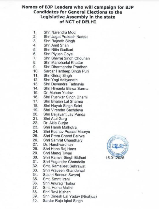 देहरादून। दिल्ली चुनाव के लिये भाजपा ने स्टार प्रचारकों की लिस्ट जारी की। उत्तराखंड में नगर निकाय चुनाव में भाजपा के प्रचार अभियान को धार दे रहे मुख्यमंत्री पुष्कर सिंह धामी दिल्ली विधानसभा चुनाव में स्टार प्रचारक की भूमिका में होंगे। पार्टी ने राष्ट्रीय स्तर पर स्टार प्रचारकों की सूची में उन्हें महत्वपूर्ण स्थान दिया है। गौरतलब है कि, दिल्ली में उत्तराखंड के हजारों की संख्या में प्रवासी रहते हैं। ऐसे में धामी की लोकप्रियता के चलते हर चुनाव में उनकी डिमांड रहती है।