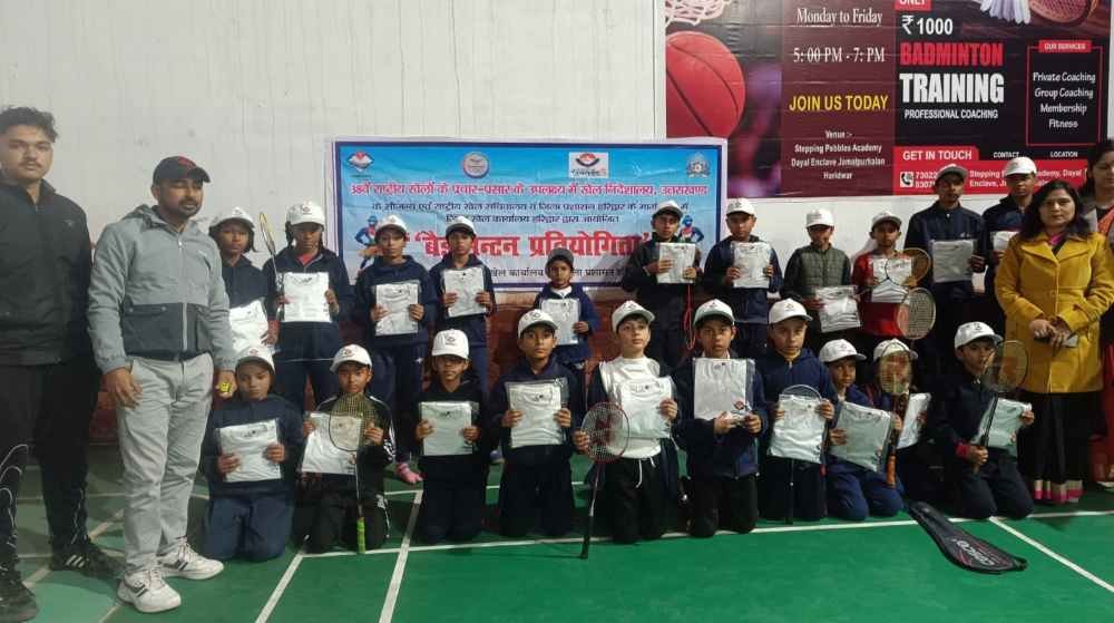 देहरादून: 38वें राष्ट्रीय खेल के प्रचार-प्रसार के उद्देश्य से खेल निदेशालय उत्तराखंड के सौजन्य एवं राष्ट्रीय खेल सचिवालय, उत्तराखंड और जिला प्रशासन हरिद्वार के मार्गदर्शन में जिला खेल कार्यालय हरिद्वार द्वारा जिला स्तरीय बैडमिंटन प्रतियोगिता का आयोजन किया गया। यह प्रतियोगिता स्टेपिंग पेबल्स एकेडमी में कराई गई। इस प्रतियोगिता में लगभग 50 प्रतिभागियों ने भाग लिया। टूर्नामेंट की शुरुआत सुबह 11 बजे से हुई और समापन शाम 7 बजे हुआ। टूर्नामेंट में बच्चों ने अंडर 12, अंडर 14, अंडर 17, अंडर 19 श्रेणियों में भाग लिया। सभी प्रतिभागियों को खेल विभाग रोशनाबाद द्वारा टी-शर्ट और कैप वितरित की गई।