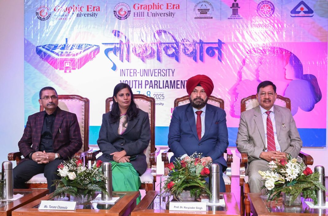 ग्राफिक एरा हिल यूनिवर्सिटी में अंतर्राजीय यूथ पार्लियामेण्ट लोकविधान का आयोजन किया गया। इसमें विभिन्न विश्वविद्यालयों के 252 प्रतिनिधि भाग ले रहे हैं। आज ग्राफिक एरा डीम्ड यूनिवर्सिटी के कुलपति डा. नरपिन्दर सिंह ने यूथ पार्लियामेण्ट के उद्घाटन सत्र को सम्बोधित करते हुए कहा कि युवा, समाज के वास्तुकार हैं। लोकविधान जैसे कार्यक्रम युवाओं में समाज का नेतृत्व करने, बेहतर नीतियां बनाने व न्याय के हित में फैसला लेने की क्षमता जागृत करते हैं।